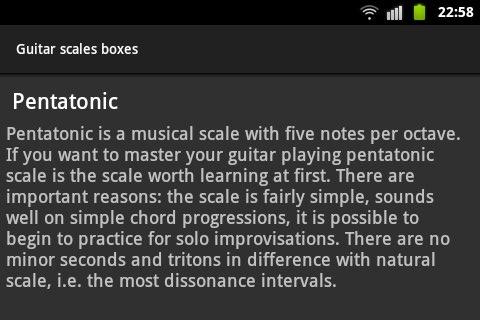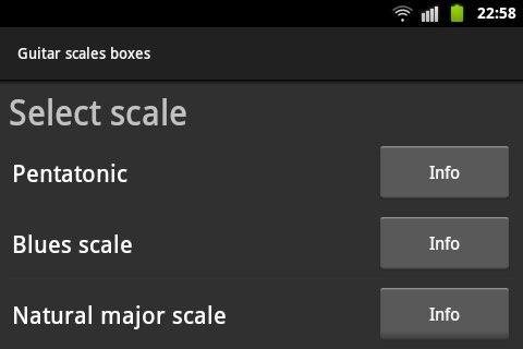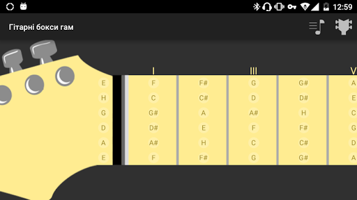 Guitar scales boxes is an application that helps you in learning different music scales and modes conveniently for a guitarist, namely in the form of boxes. You can easily select the tuning of an instrument, see the list of scales or modes, view the information about them, and how they are located on the guitar fretboard. Then you can select the position for the chosen scale to be viewed, learned and listened.