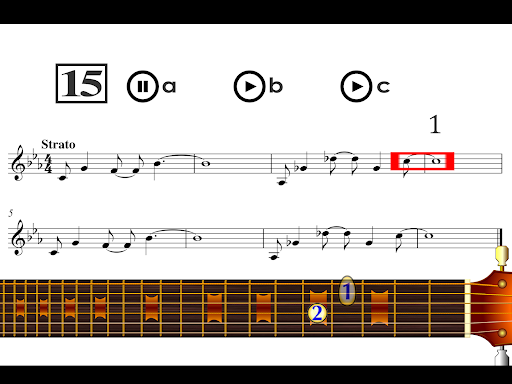 When the exercise begins you have to click on each string and fret that corresponds to that which is written. This has to be done at first sight in real time.