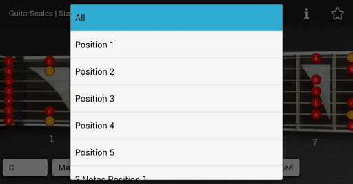 Highlight the whole fretboard to show which notes are within a chosen scale and a some positions (5 positions, 3 notes per string positions, diagonal positions) for each scale. Containing examples of the sound of scale. Optimised for all devices and tablets.