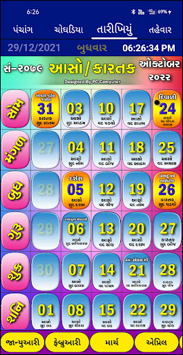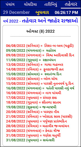 Gujarati Tarikhiyu 2022 Holiday and Festival List Of 2022, Day And Night Choghadiya and Panchang, Bank Holiday including second and fourth Saturday list.