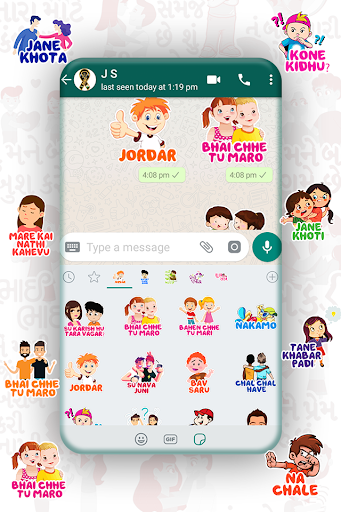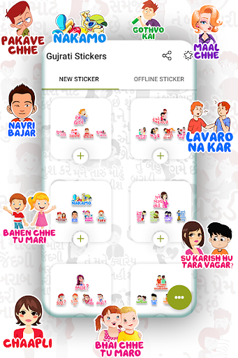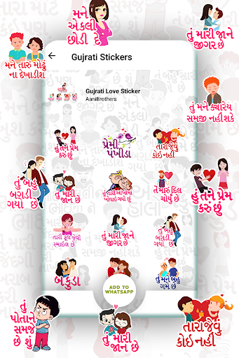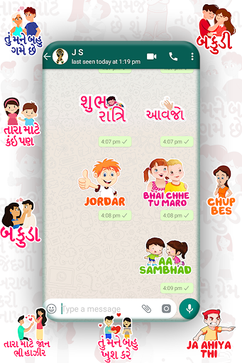 There are lots of stickers like love , funny , typical gujju style stickers , special Gujarati words for love once , friendship etc.