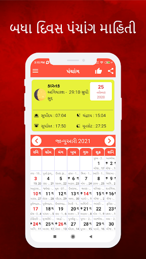 ● Single app with 2020 and 2021 year calendar and panchang for Gujarati speaking people