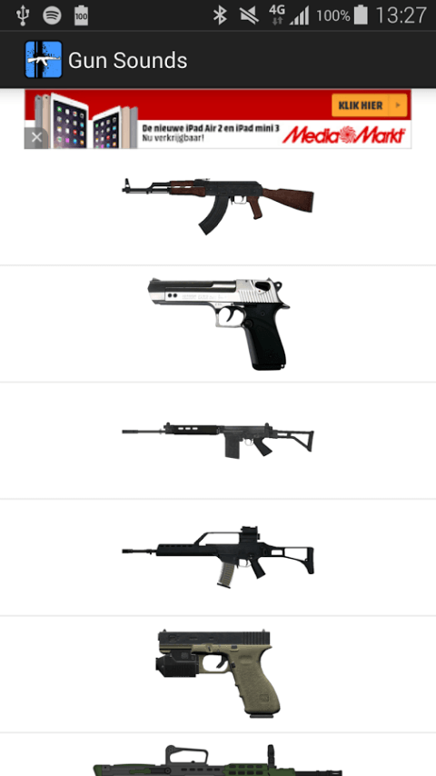 These sounds are the most realistic sounds you will ever find. We have taken the time to record each sound in our own gun range and thus you won't find a better most realistic sound anywhere. Most of these guns are used in different wars all over the world. And all of these weapons are also found in movies and games. TRY THIS REALISTIC GUN SOUNDS APP NOW!