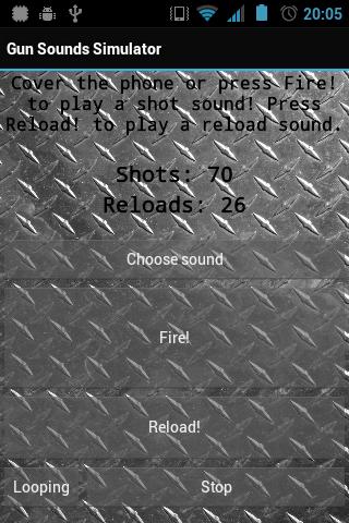 weapon sounds in your phone Shoot at your friends with a proximity sensorWanna do a joke Or do you just like weapon sounds? You should try this applicationWhat about Gun Sounds Simulator?A lot of realistic gun sounds:shotgun M4A1, M1 Garand, Glock 9mm, Barreta M9, Silenced Pistol, Sniper RifleReload soundRandom shot modeLooping function and button stopVibrations you can turn off this in menuThere are two ways of shooting: you can press the button or use the proximity sensor in front of your phone just cover the phoneRemember If your phone doesn39;t have a proximity sensor you will be able using only the button.If you like this application don39;t forget, rate thistags weapon, sound, realistic, gun, shoot, joke, funny, fun, sensor, proximity, touch reload, fire