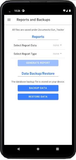 * NO automatic backup to any online servers. You can manually backup data to your SD card but otherwise, ONLY YOU have access to your sensitive gun information