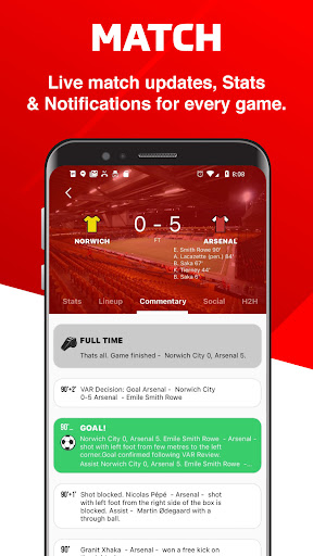 The number one football app for Arsenal fans! Get your Arsenal live scores, instant goal alerts, breaking news, transfer updates, match stats, match highlights, fixtures, results, and Arsenal fan podcasts all in one place.