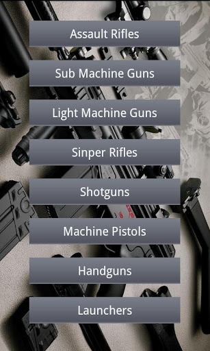 Guns amp; GalleryGunsGalleryGun is a realistic and favorable simulator including most popular guns.Gun is a realistic simulator with shooting range experience, which has most popular guns and their information, including Handguns, Shotguns, SubMachine Guns, Assault Rifles, Sniper Rifles, Machine Guns.With shake and vibration support.The following weapons are included in this elite soundboard application: Assault Rifles M4A1 M16A4 SCARL CM901 TYPE 95 G36C ACR 6 8 MK14 AK47 FAD Sub Machine Guns MP5 UMP PP90M1 P90 PM9 MP7 Light Machine Guns L86 LSW MG36 PKP PECHENEG MK46 M60E4 Sniper Rifles BARRET 50 CAL. L118A DRAGUNOV AS50 RSASS MSR Shotguns USAS 12 KSG 12 AA12 SPAS12 STRIKER MODEL 1887 Machine Pistols FMG9 MP9 SKORPION G18 Handguns USP P99 MP412 .44 MAGNUM FIVE SEVEN DESERT EAGLE Launchers SMAW JAVELIN STINGER XM25 M320 GLM RPG