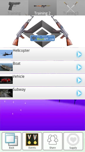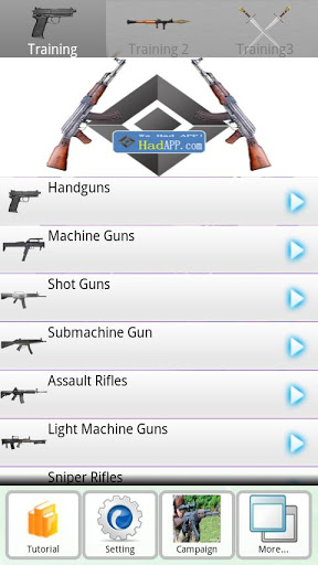 guns Warehouse is a gun game app on the mobile phone which can let you feel most of guns of today. It is a simulator which can become your mobile phone as a real gun.It is very handsome when you grasp a gun and shoot the target accurately. Do you want to have a gun? In fact, it is not easy to have a real gun and you may break the law if you really have a gun. However, you can have the feeling of grasping a gun, a real gun.Guns Warehouse has the ability to let you feel that you are grasping a real gun. I can tell you more details of this app.1. Although this is a real good gun simulator but it is still free and you need not to pay money to get many guns with this app.2. When you open this app, you will be told how to set your mobile phone as a real gun. The volume button is very important and you should set your mobile phone seriously.3. Three modes of training are provided to you and you can choose the one you like to train. The training 1 mode is training to learn shooting and use different kinds of guns.4. The training 2 mode is to train you in shoot the moving target. And you will be set in different places just like that you are playing CS.5. The training 3 is to train you learning how to use cold weapon such as sword, slap, punch, hidden weapon and whip and so on.6. If you feel this app is really good, you can share it with your family and friends by bluetooth gmail and Messaging.7. The interface layout of this app is adjusted carefully and it is more practical and can let you get better feeling of different guns.Guns Warehouse stores many different kinds of guns and you can download it and have a try.Guns Warehouse belongs to the cell phone gun apps but it is more powerful and functional. You can imagine that you phone can simulate most guns and you can show off this to your friends. How proud it isIf you love CS and you like the gun movies and you want to have a gun, then Guns Warehouse is your beat choice. It is the best mobile phone gun app which I have played. I believe that as long as you play this gun game one time, you will love it.Generally, guns take advantage of compressed gas confined by the barrel to propel the bullet up to high speed. In guns the high pressure gas is generated by combustion, usually of gun powder. This principle is similar to that of internal combustion engines, except that the bullet leaves the barrel, but the piston transfers its motion to other parts and returns down the cylinder. As in an internal combustion engine, the combustion propagates by deflagration rather than by detonation, and good gunpowder, like good motor fuel, is resistant to detonation. This is because much of the energy generated in detonation is in the form of a shock wave, which can spread the gas to the solid structure and heat or damage the structure, rather than staying as heat to propel the piston or bullet. The speed of a shock wave at such high temperature and pressure is much faster than that of any bullet.