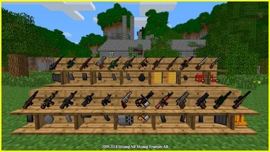 Guns for mcpe adds to the game more than 50 weapons of various types and other new items. Especially cool shooting from guns mod and the ability to aim are realized in Minecraft PE. All guns in minecraft mods have their own sounds when shot, which gives even more coolness to mcpe mods! Also you will have access to new grenades, you can fly a parachute, use binoculars, armor mod and first-aid kits.