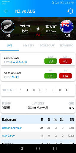 When the live match is going on, the app gives you Match Rate and Session Rate.