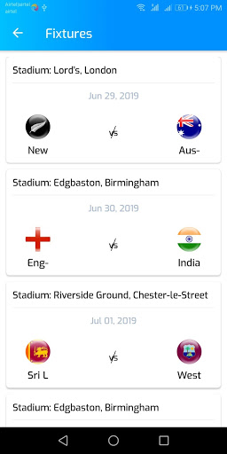 • Match Fixtures and Schedules