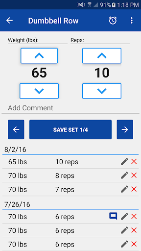 Record gym sets by weight and reps