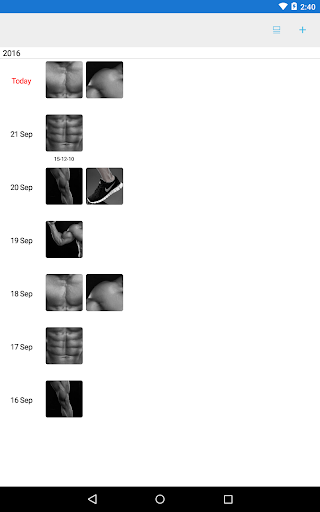 Easy journal and calendar for gym! You can note the training of the muscle group - shoulders, chest, abdominals, back, arms, legs or cardio (running). Free edition of the Gym Calendar with advertising.