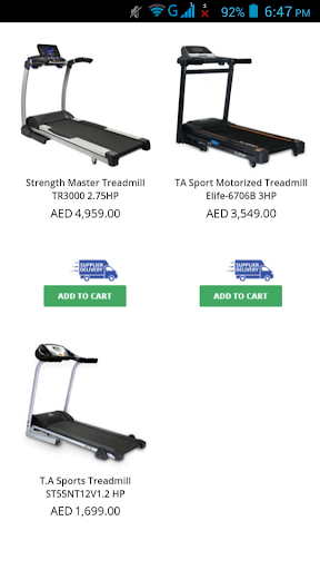Shop Exercise Equipment in Dubai UAE - With this FREE Android app anybody can shop online gym equipment with the help of single tap of your smartphone. It offers you shopping for exercise bikes, treadmills, rowing machines, bodybuilding weights, elliptical machines, smith machines, cross trainers, squat racks and stands, weight lifting equipment, barbell weights, bodybuilding benches and everything linked to fitness equipment. This app is must have for Dubai UAE bodybuilders and newbies in bodybuilding world.