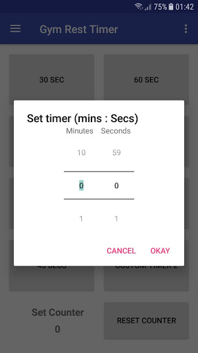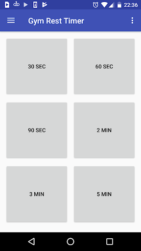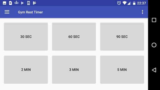 Gym Rest Timer makes timing your rest breaks easy. It includes big buttons (for shaky hands) for all the main rest break periods. You could just use your phone clock, a stopwatch, a countdown timer or any other type of timer (even old school manual), but Gym Rest Timer makes it simple, a single click, in fact. No typing in the number of seconds, or scrolling to get your rest length. Finish your set, click a (big) button, rest, when it beeps do your next set.