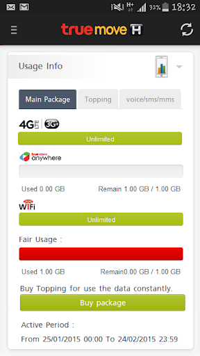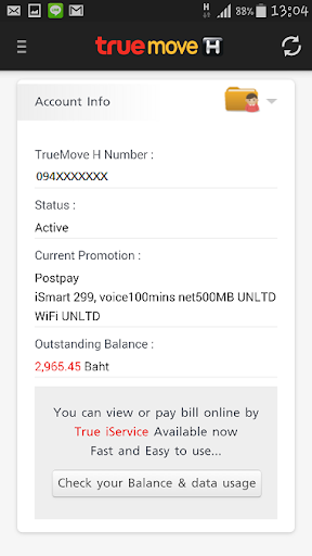 H Pack is the service to help Truemove H customers check usage of mobile internet, WiFi, voice, sms/MMS ,view current promotion or add internet package to speed up after use over fair usage volume. Including recommend suitable packages and privilege to customer.