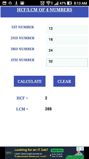 This is a very good calculator app. It is easy to solve multiple question.we can easily find squares and square roots of a number. There is also contain the multiplication table. The HCF and LCM is the best future of this app.