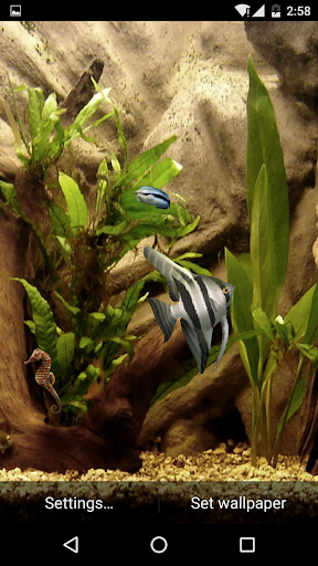 HD Aquarium Live Wallpaper in beautiful 3D is a good live fish wallpaper as it features all sorts of colorful tropical fish, decorations, plants and effects. The Aquarium Live Wallpaper acts just like a real life aquarium! In wallpaper animation is high quality, creating very realistic fishes floating on a background of sea coral.