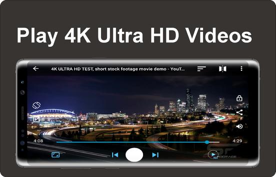 Ultra HD 4k video player, support HD, Full HD and 4K Videos.