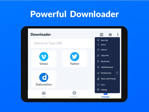 Your privacy is our top priority. This private video downloader app allows you to use password to protect downloaded videos. With its built-in private browser, you can browse incognito without leaving any traces, cookies, caches, etc.