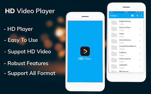 HD means High Definition Video player or HD Video Player is a Video Player for playing all format video in your device.Play any format video in standard quality and Full HD Quality Video Watch by using HD video player.Its a HD Video player supports all video formats including AVI , MP4 , WMV , RMVB , MKV , 3GP , M4V , MOV , TS , MPG , FLV etc.One of the best and essential application for your device.
