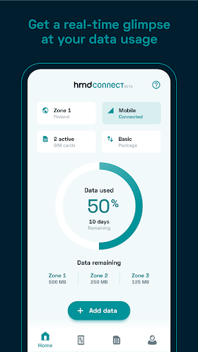 The HMD Connect app for Android give you full control of your HMD Connect data plan, along with the simplicity of managing your data at a price that works for you, starting at just €9,95.