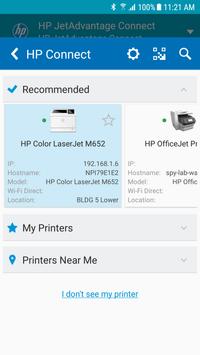 • Discover business printers - locate more printers when your business deploys the HP JetAdvantage Connect solution