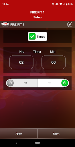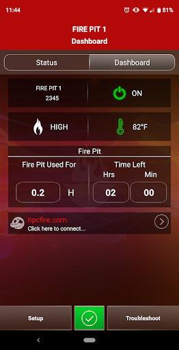 HPC Fire App can be used to connect to a fire pit made by Hearth Products Controls.