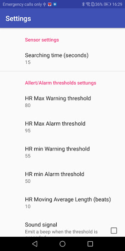 The app was developed to use it in conjunction with Polar and TICKR bluetooth transmitter. It allows you to train with heart rate, you may set thresholds with audible and visual alarms when exceeding or below user-defined thresholds. The app can be used to train in a specific zone and it may be used to indicate a possible irregularity of the heart.