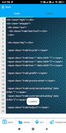 d) Finally, press the "GET" button, it will fetch the code from your mobile and show the code in your browser's editor window.