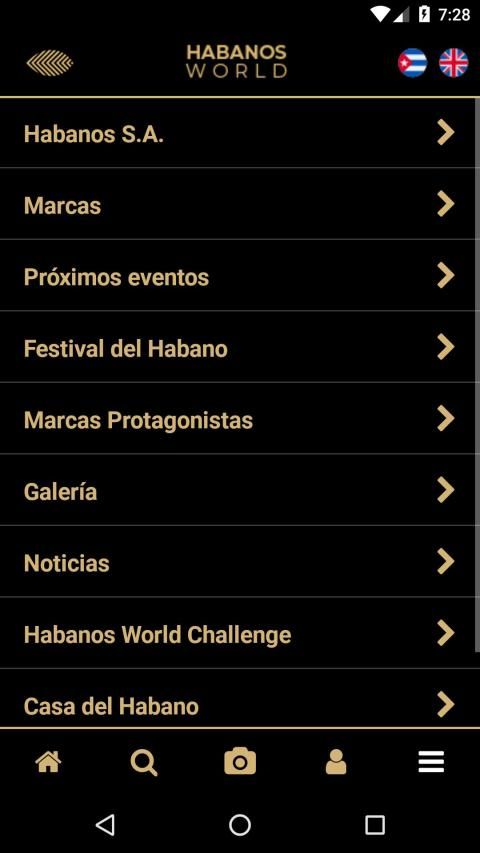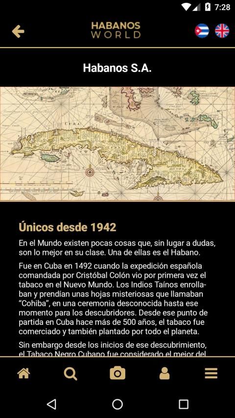 Aplicación móvil de Habanos s.a. Habanos D.O.P. Hecho en Cuba Totalmente a mano.