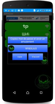 Hacker WiFi Password Hacker is a joke application that gives the impression that you can hack a Wi-Fi network claims that you can hack any WiFi network. He can claim hacking secure wireless network using WEP, WPA2 and AES encryption, and so on. It presents just an animation that you're hacking and nothing else. So it does not harm any of the network.