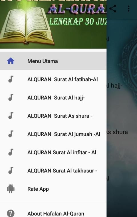 Apikasi Hafalan Al-Quran Lengkap 30 Juz ini merupakan aplikasi di mana kita bisa mendengarkan dan bisa menghafat ayat ayat suci Al-Quran dengan mudah