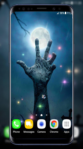 Be the most elegant witch ever wearing the pretties black dress and shoes. Fly on your magical broom at the highest heights. The bright stars are sparkling behind you and you feel like you can almost touch them. Decorate your smartphone with this popular photo so that you can glance at it any time you wish. Do not be afraid from the hands reaching from the graves they are here to embellish the cemetery for the party. The scenery is perfect with the light that comes from the orange full moon that enlightens tombstones and spooky scarecrow. Download free the top Halloween Live Wallpapers application and enjoy the breathtaking celebration of this significant holiday.