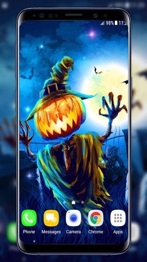Halloween Live Wallpaper is a full HD collection of spooky images! Try these high definition Halloween themes for making your Halloween more exciting and scary! On our Halloween wallpaper app the evil pumpkins are breathing and smiling at you! Hope for a night with a full moon and starry sky and wish upon a star that this night lasts forever. Let the fire flames burn in the pumpkin! Have lots of frightful fun with scary wallpapers free for smartphone!