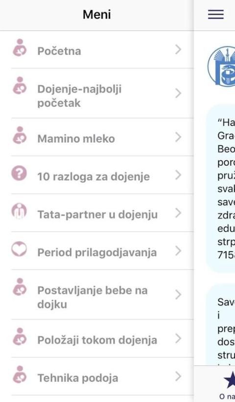 answers related to the topic of breastfeeding. For those who need more information and further consultations are available on-duty nurses in the telephone counseling "Hello baby", 24 hours every day of the year. The application offers the possibility of calling the counseling.
