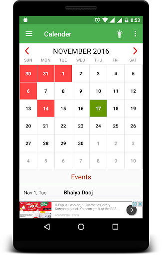 ★Indian Calendar - Information about major festivals in India and public holiday are listed in calendar.