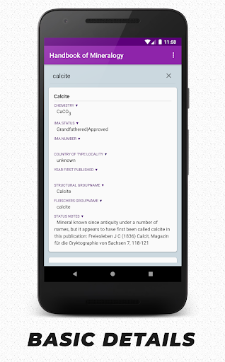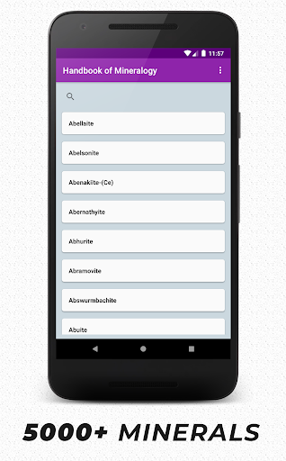 Handbook of Mineralogy is a free android application with the complete list of minerals approved by International Mineralogical Association (IMA).