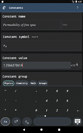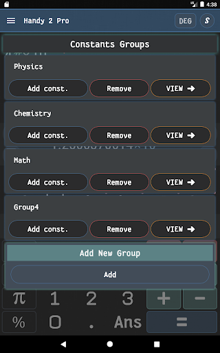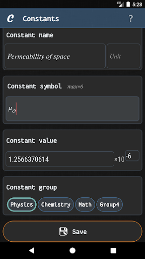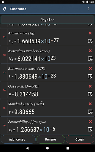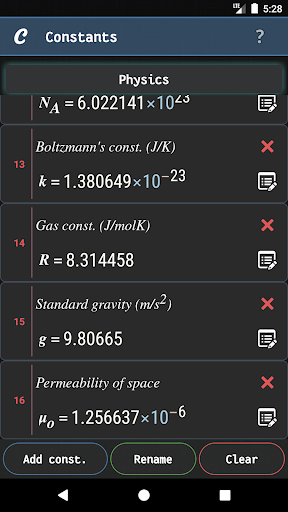 ✓ Constants system that allows you to store your variables in groups and use the constants in your calculations.