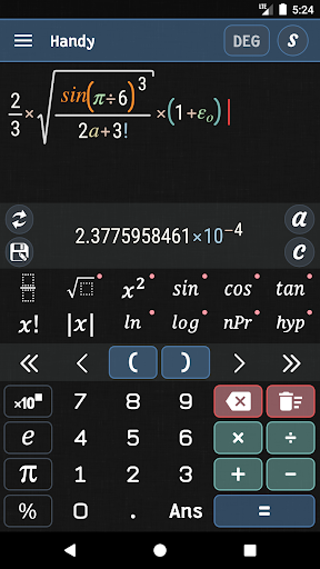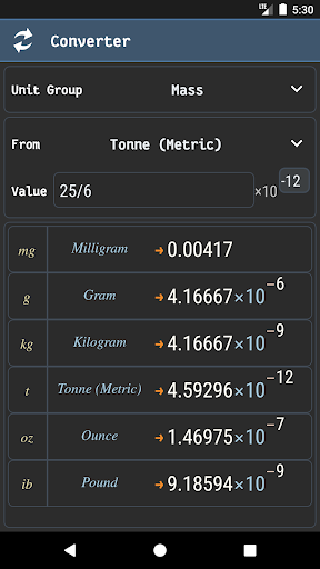 ✓ Handy allows you to display result in decimal, fraction or DMS (degree, minutes and seconds).
