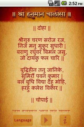 FREE Shree Hanuman Chalisa in Hindi,Gujarati and English language with audio.