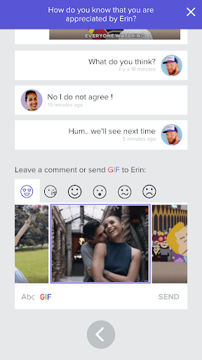 ★ Commenting - After discovering matches or mismatches, respond with a message or some of our quirky animated GIFs, each chosen for specific emotions