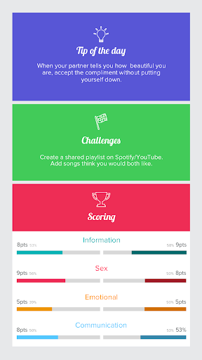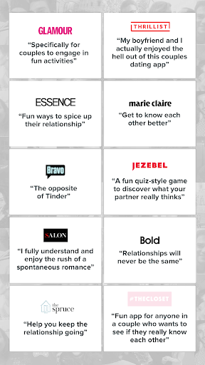 As you play regularly, you’ll find that the game sparks discussions on unexpected, important, and even taboo topics.It's the perfect app for all types of relationships: long distance, married with children (or not), members of LGBTQ community, in a brand new couple, or together for years!