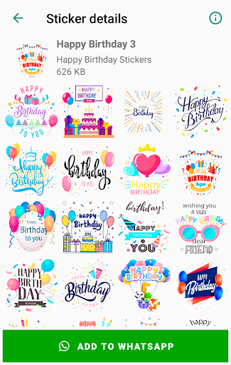 Use this Happy Birthday Stickers WAStickerApps and Add New Stickers pack of: