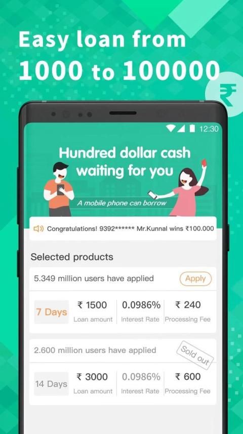 (1)Online money loan products: INR 5,000 - INR 15,000;