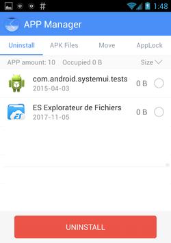 Uninstall unwanted applications, manage apk files and move applications to the SD card.