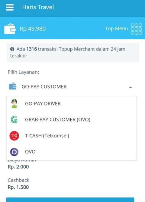 - Isi Ulang GOPAY(Customer dan Driver) dan GRABPAY