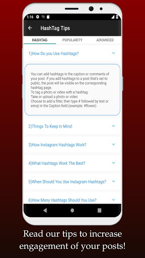 HashTag's provided the most popular hashtags in different categories & groups for you to find, access, and copy as quick as possible. With the Template section, make and manage different pre-captions, then copy the one you want with one click. There is also some of very useful tips in HashTag for you to get the best result of using hashtags.
