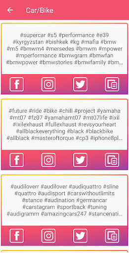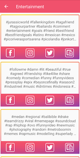 - 50+ categories in Hashtag For Instagram, Facebook, Twitter
