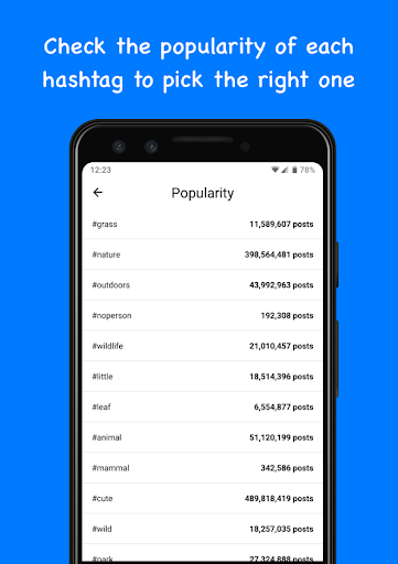 • Check the popularity of each hashtag to pick the right one.